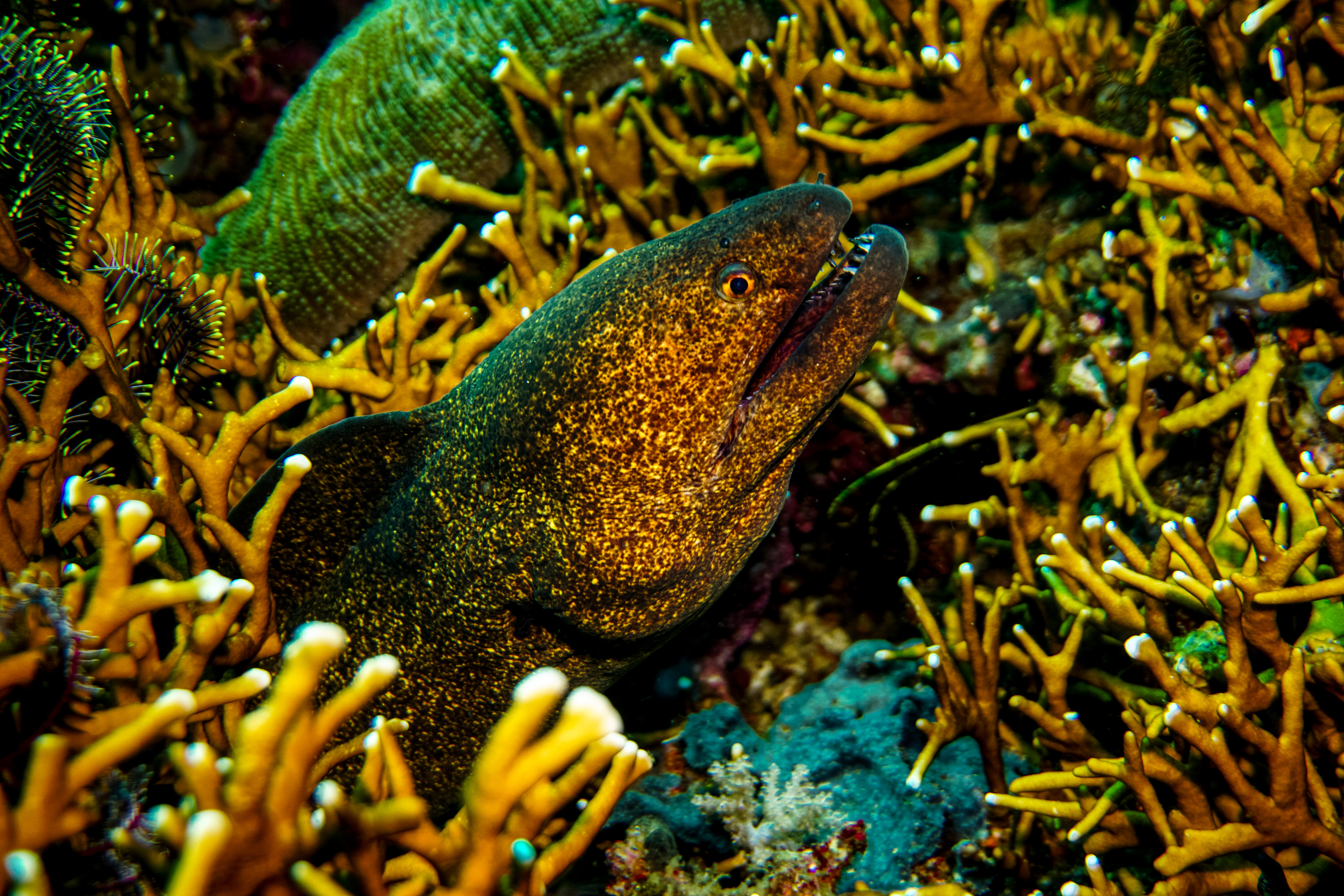 The Giant Moray Eel (Gymnothorax javanicus) is one of the largest and most formidable ee
