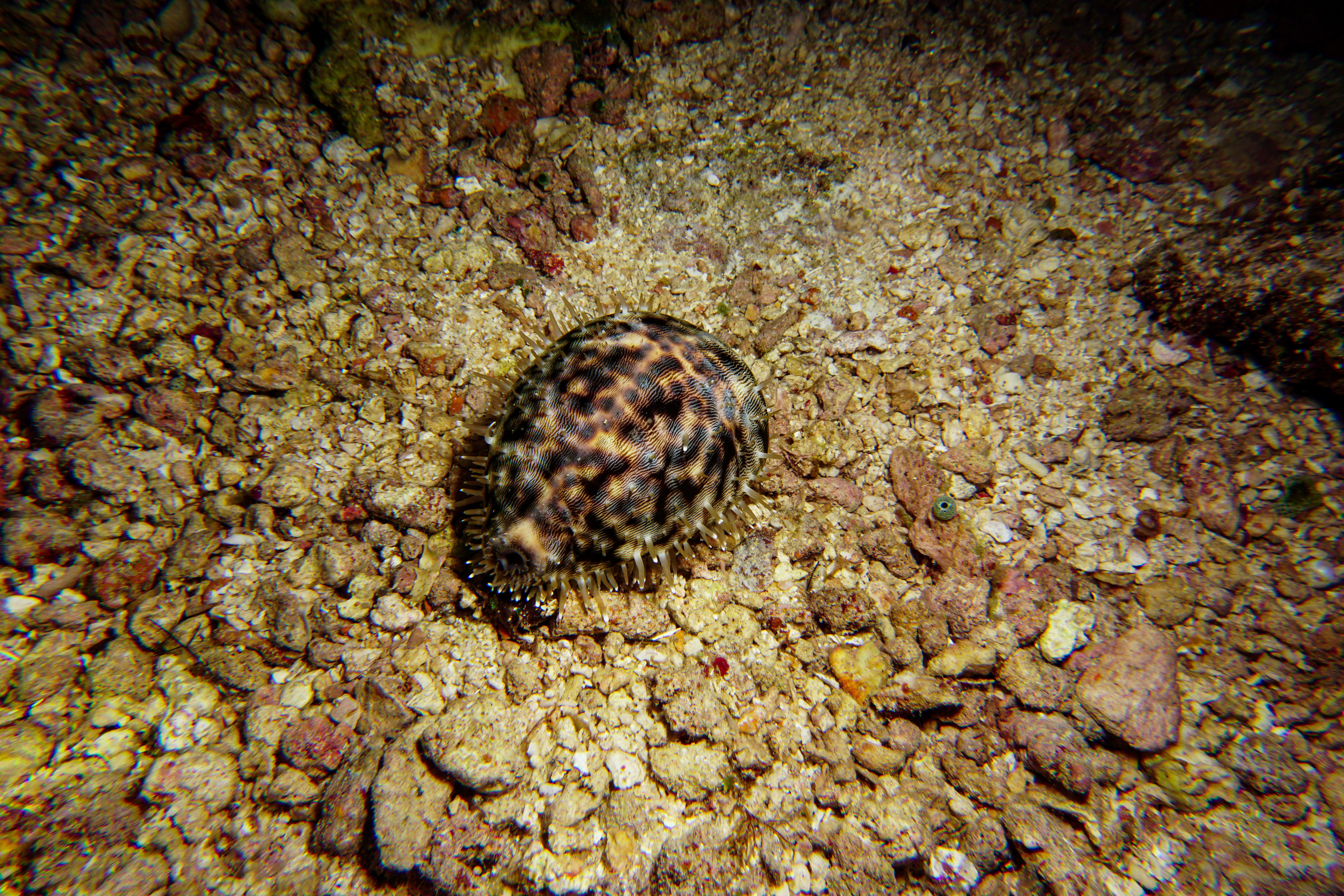 The Tiger Cowrie (Cypraea tigris) is a strikingly beautiful sea snail k